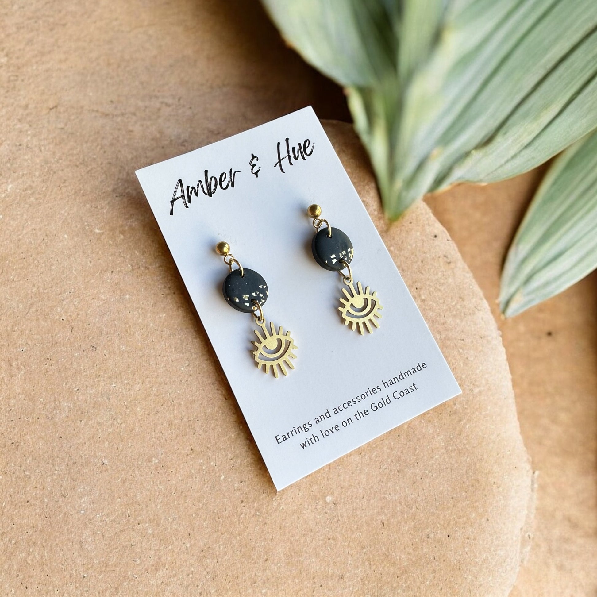 Eye Charm Dangle Earrings Black & Gold
