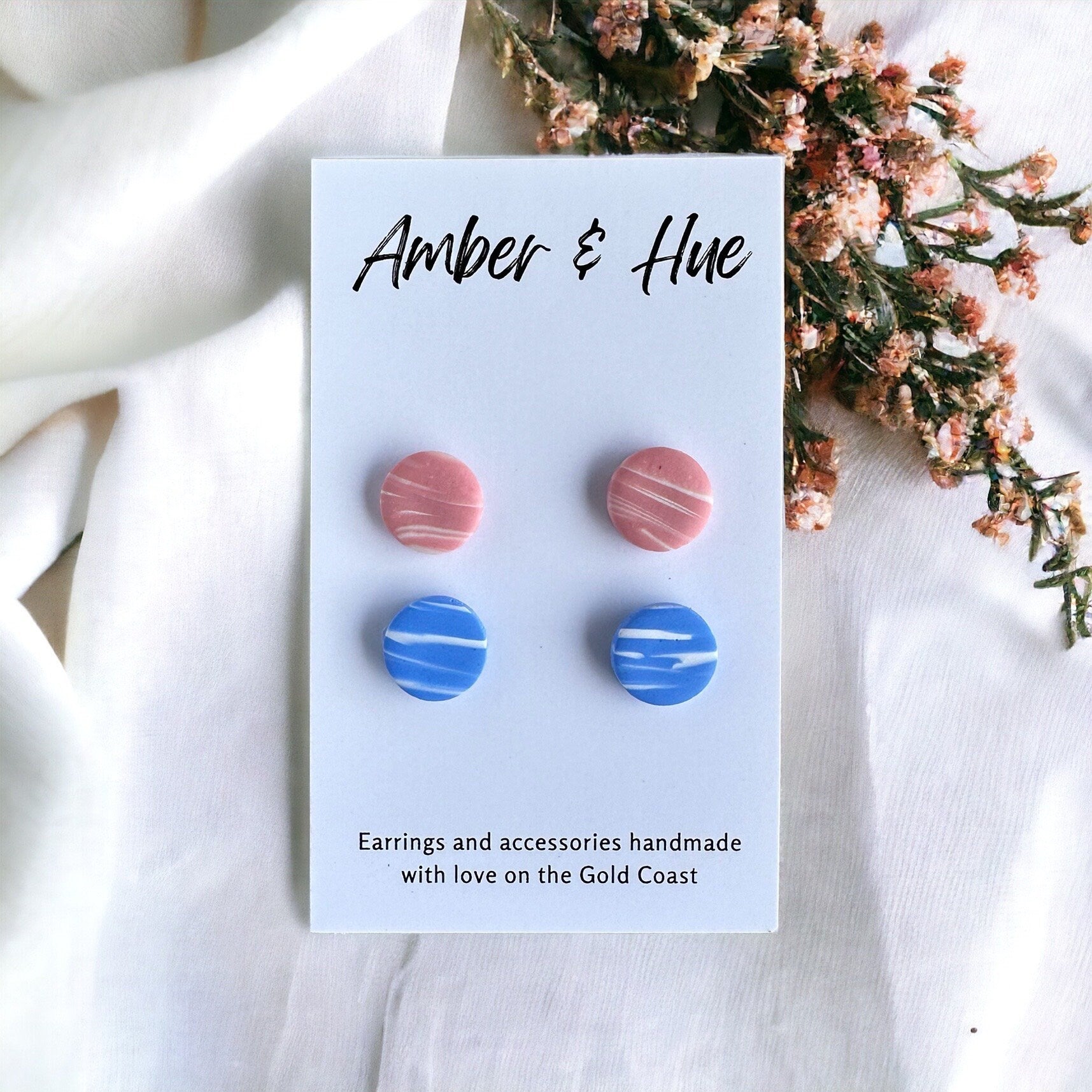 Dive into a Dreamy Duo: Handmade Blue & Pink Polymer Clay Stud Earring Pack