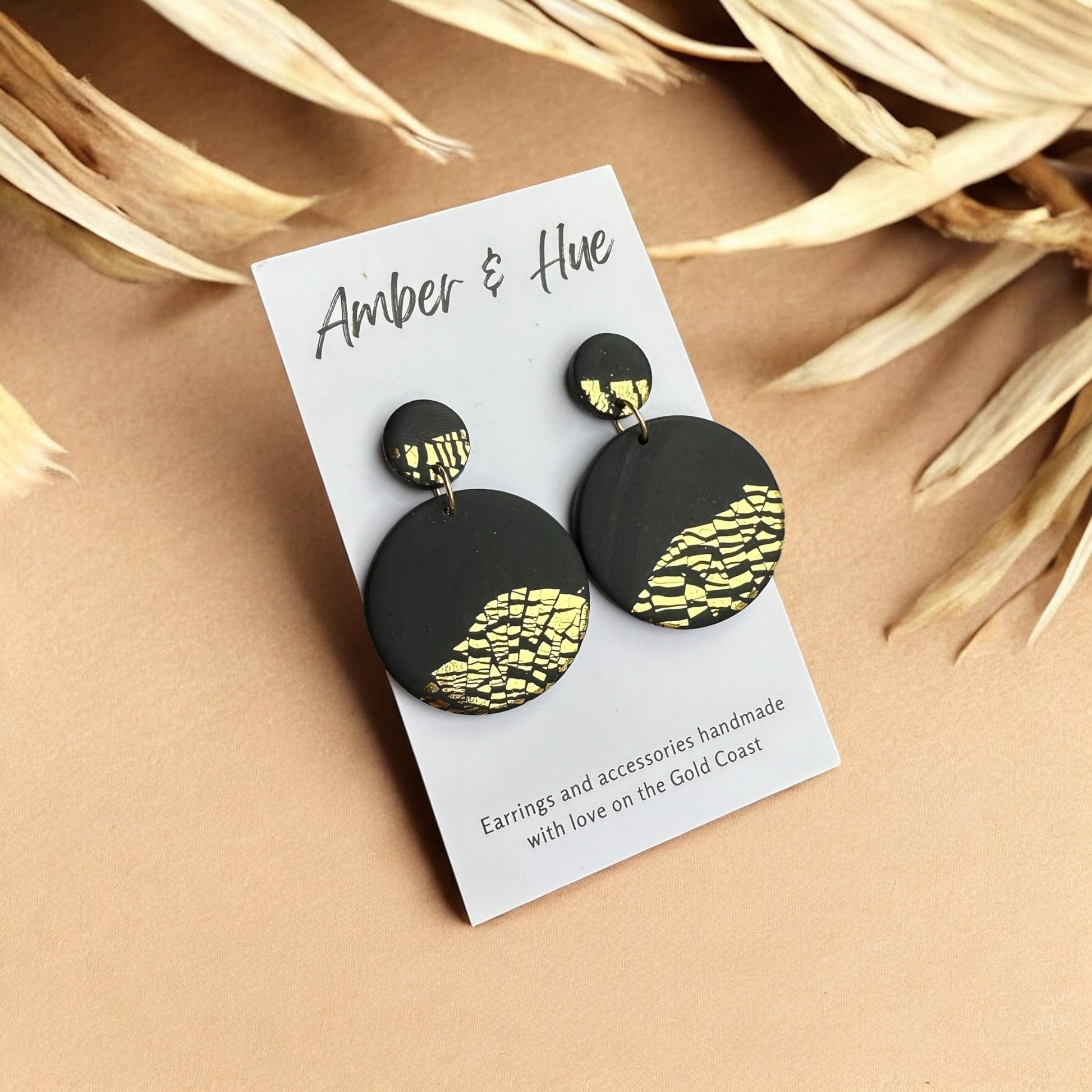 Timeless Elegance: Black and Gold Round Dangle Earrings, Handcrafted with Love