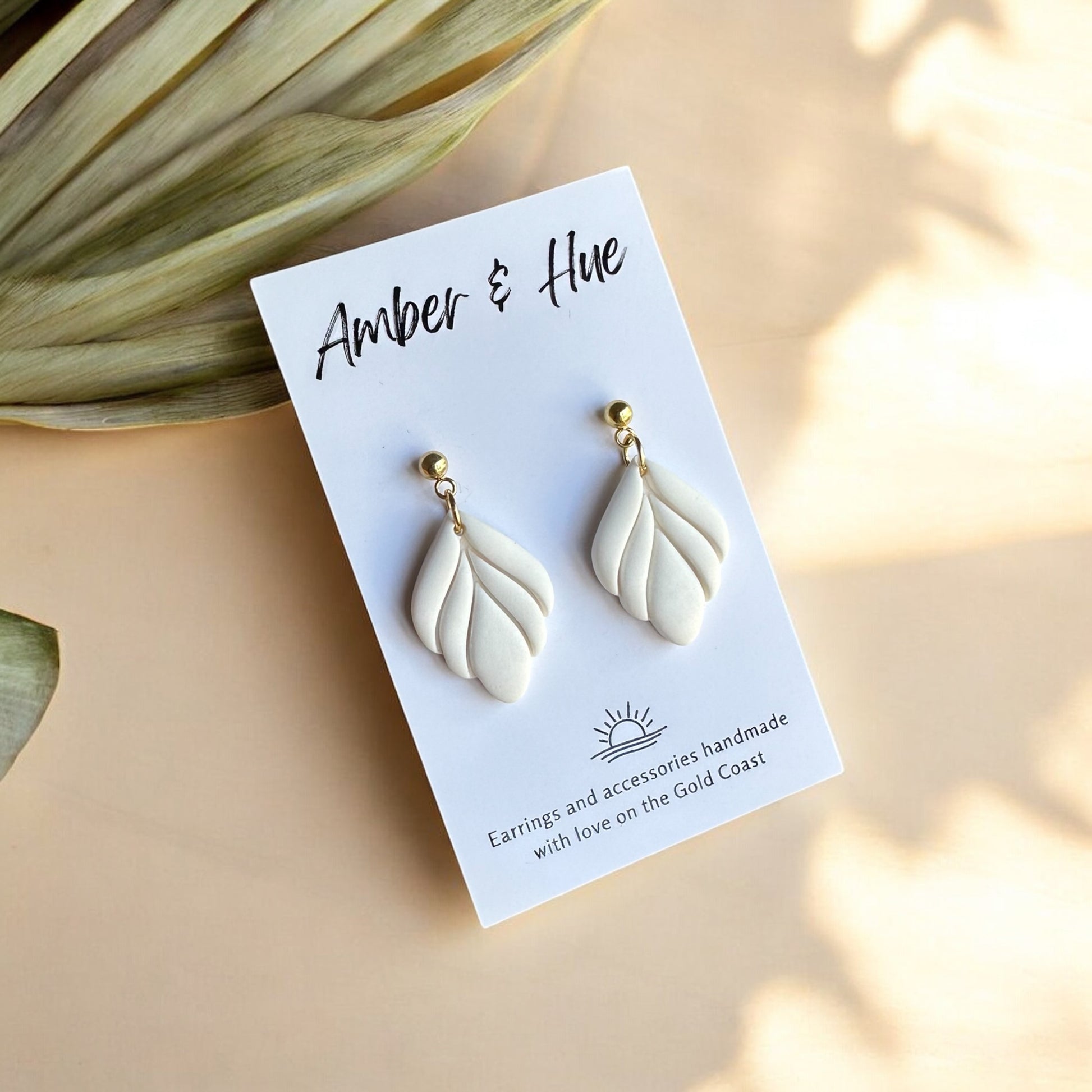 Embrace Natural Elegance: White Leaf Dangle Earrings, Handcrafted from Polymer Clay