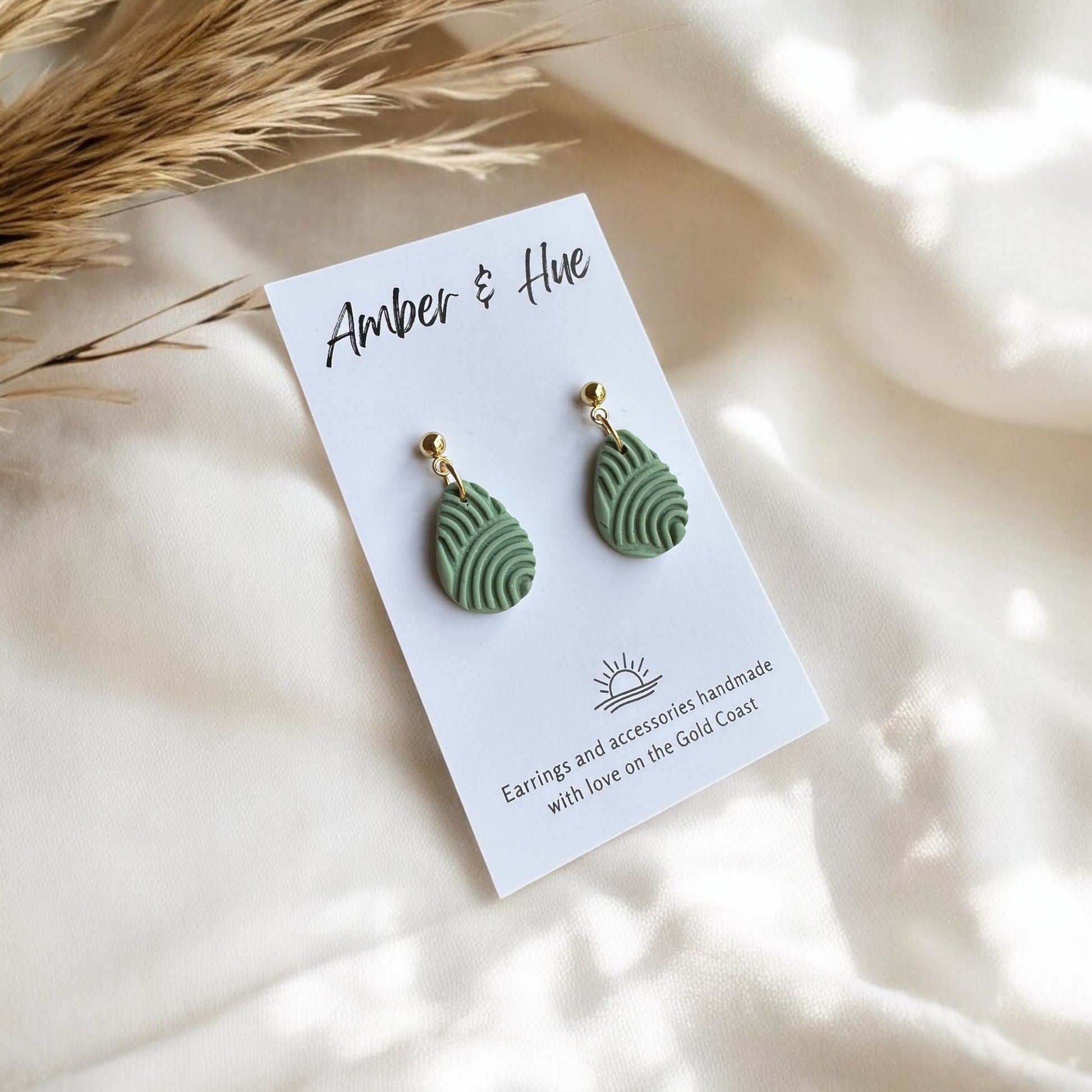 Add a touch of delicate charm to your everyday style with these handcrafted Sage Green Small Teardrop Textured Earrings. Each pair is lovingly made from high-quality polymer clay, ensuring a lightweight and comfortable wear.