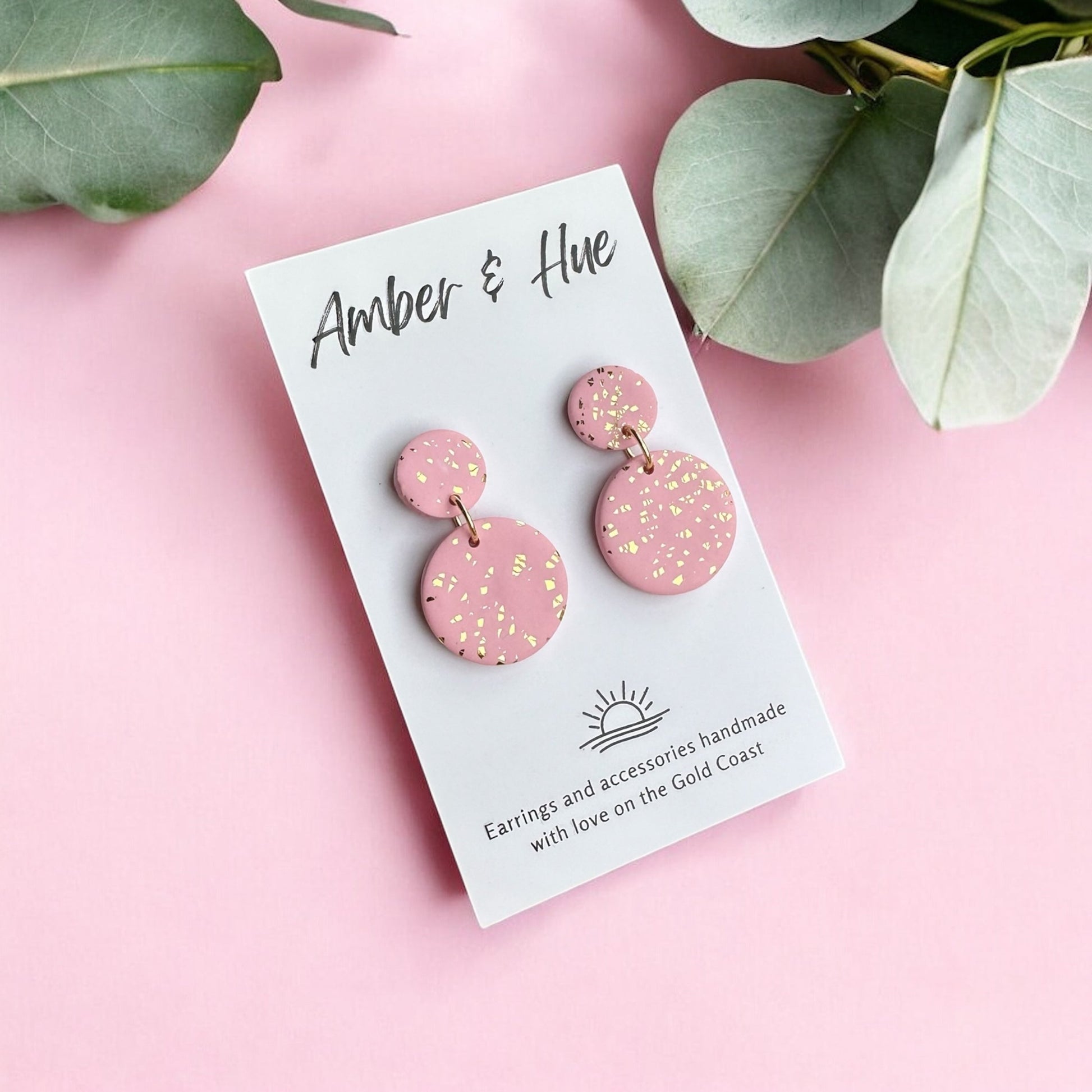 Treat yourself or surprise a loved one with these exquisite Pink and Gold Sparkle Round Dangle Earrings. They're more than just jewelry; they're a wearable work of art!