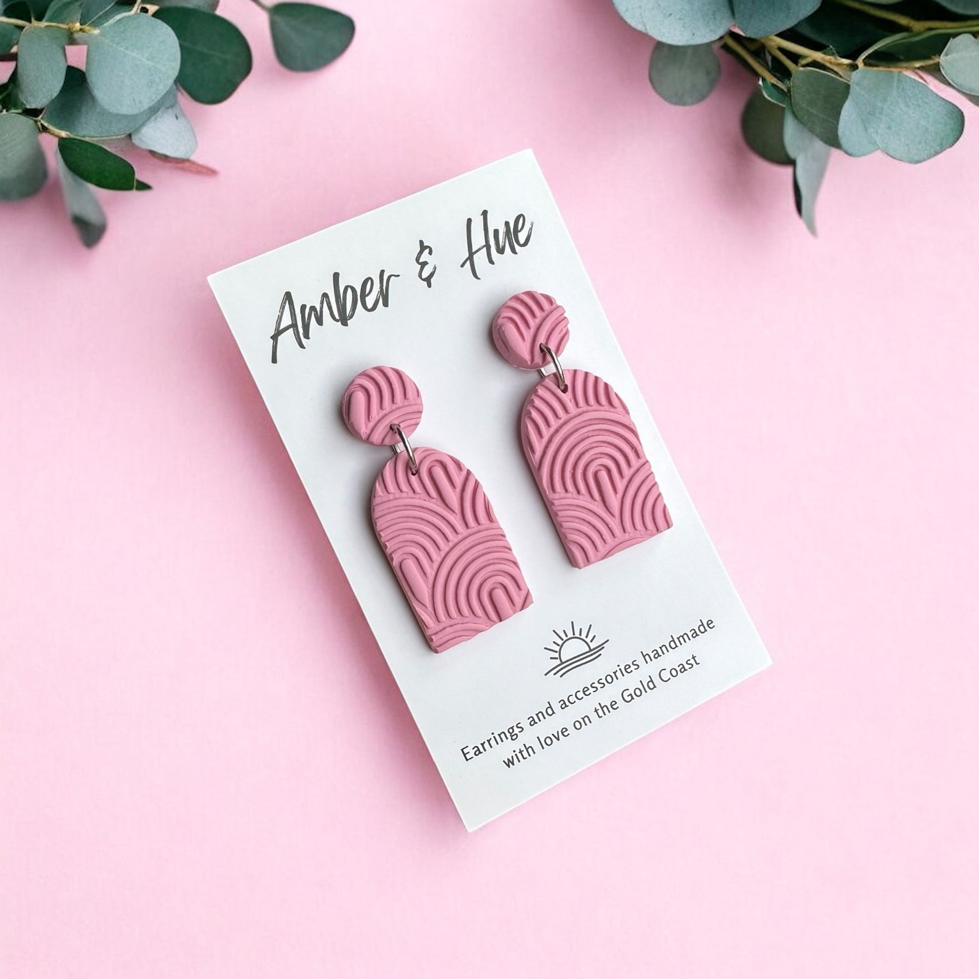 Bring a pop of vibrant color and unique texture to your look with our Pink Long Arch Textured Dangle Earrings! These stunning earrings are meticulously handmade from lightweight polymer clay, ensuring comfortable all-day wear.