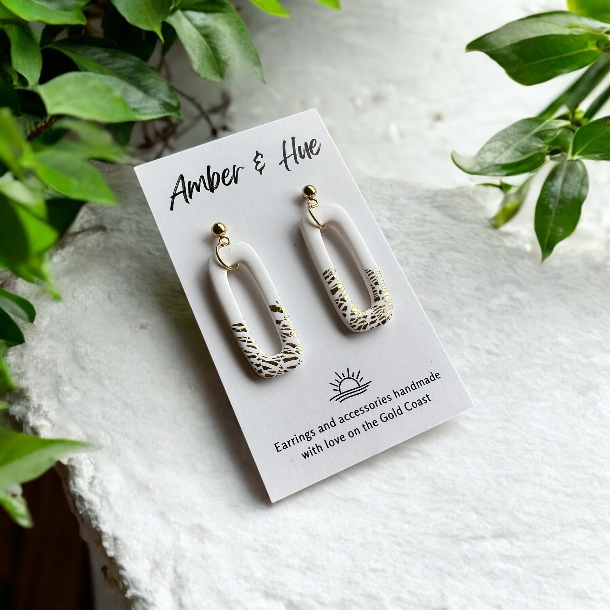 Elevate Your Everyday with Elegant Simplicity: Rounded Rectangle White and Gold Dangle Earrings