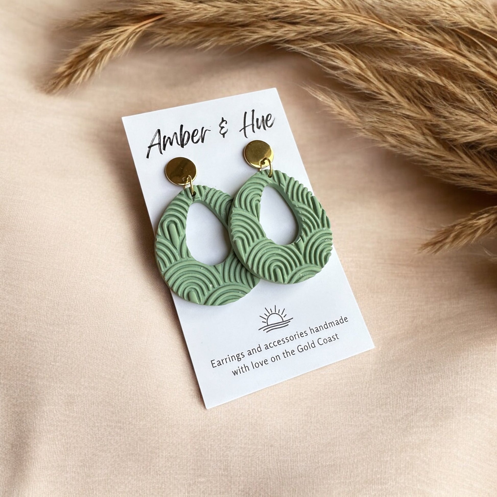 Sage Green Rounded Teardrop Dangle Earrings With Gold Stud Post