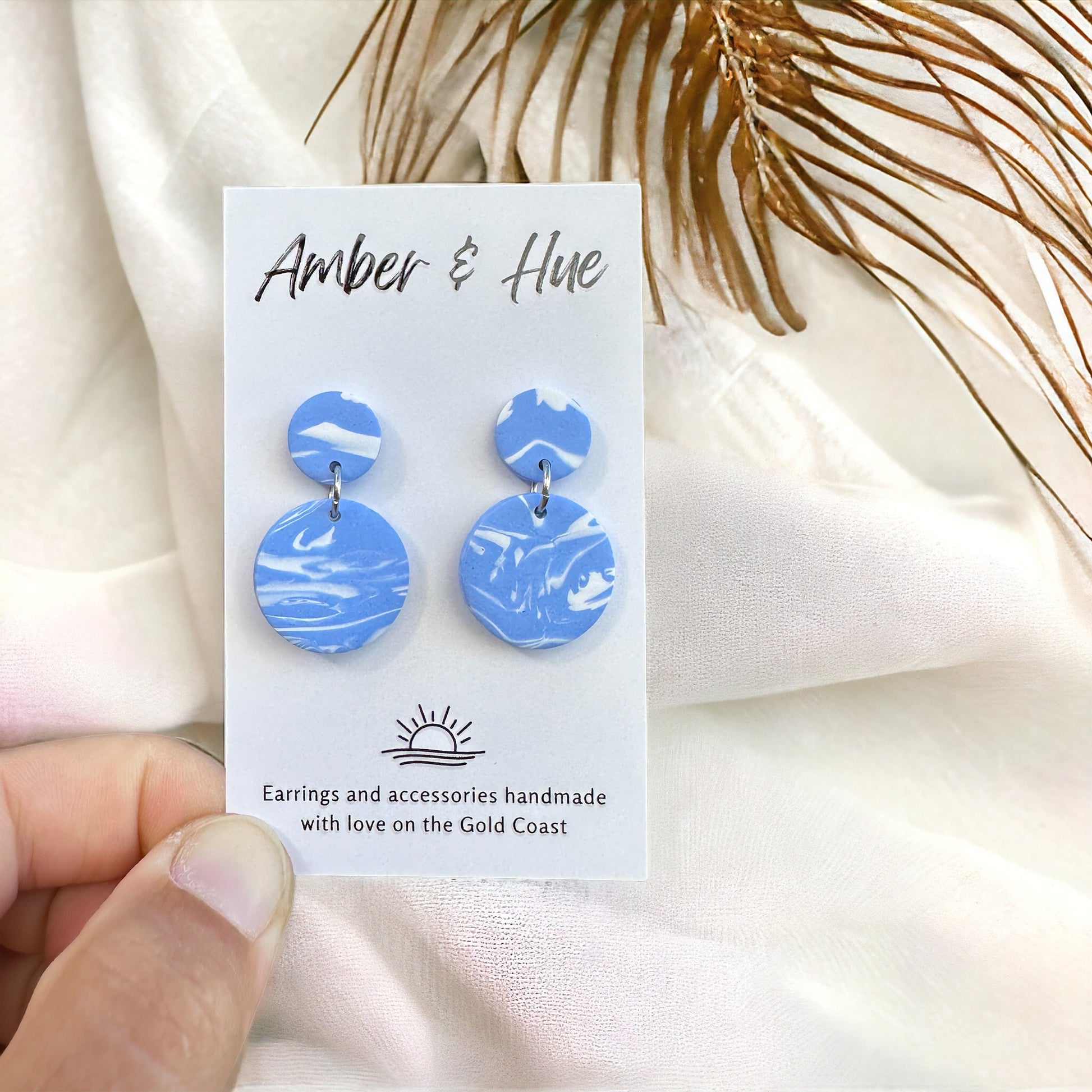 A Touch of Summer Sky: Sky Blue and White Handmade Polymer Clay Dangle Earrings