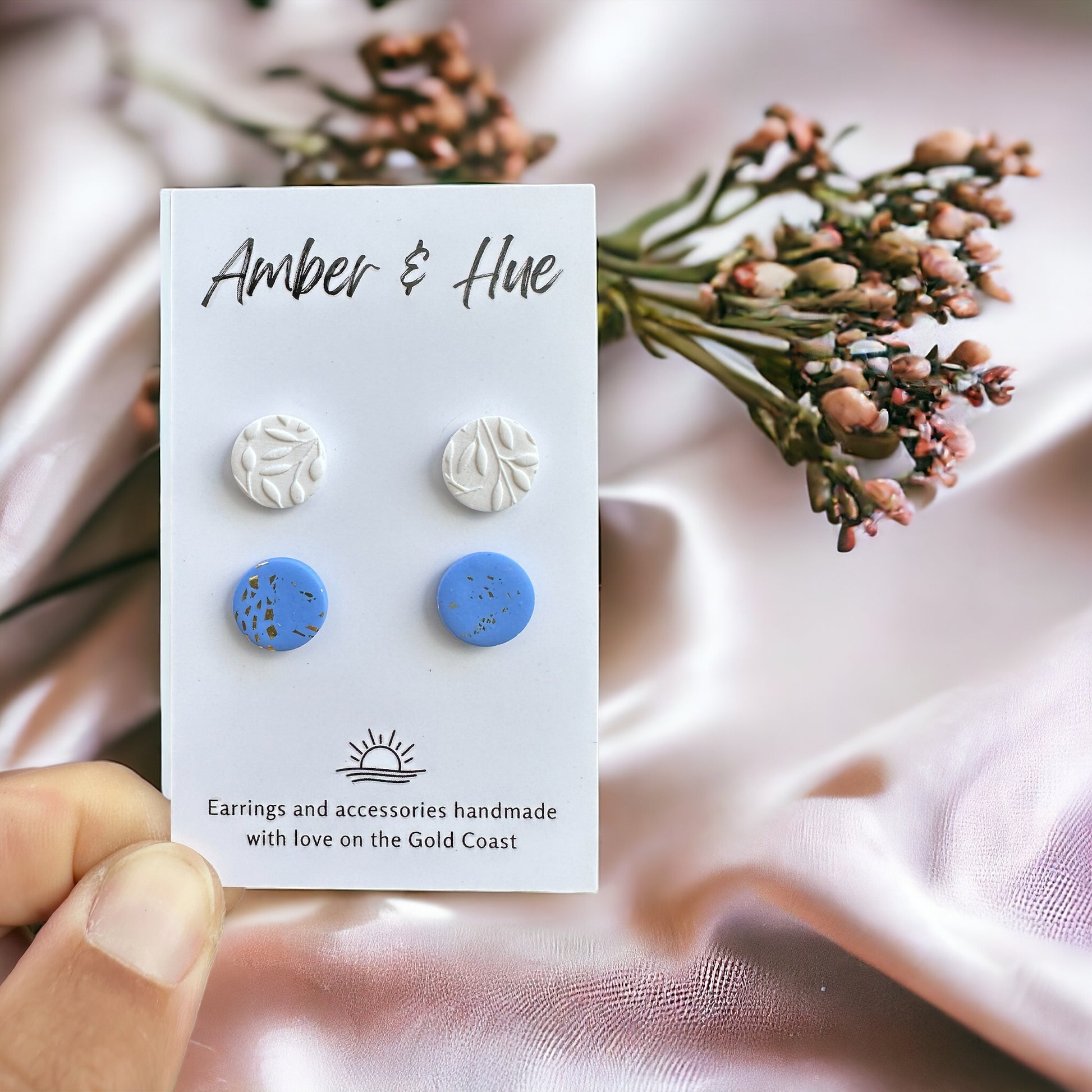 Elevate your everyday style with this delightful stud pack, featuring two captivating pairs of handmade polymer clay earrings! Each piece is meticulously hand-crafted, offering a touch of whimsy and elegance for any occasion.