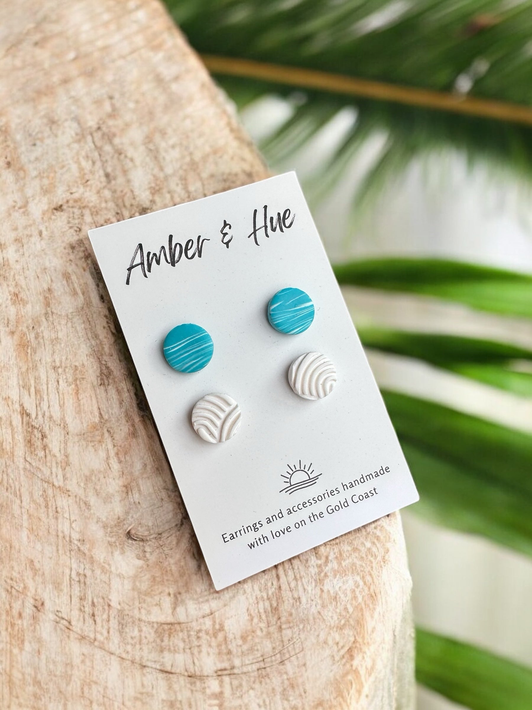 - Marbled Aqua Studs: A swirl of vibrant aqua hues creates a playful and eye-catching statement, perfect for adding a pop of color to your look.
