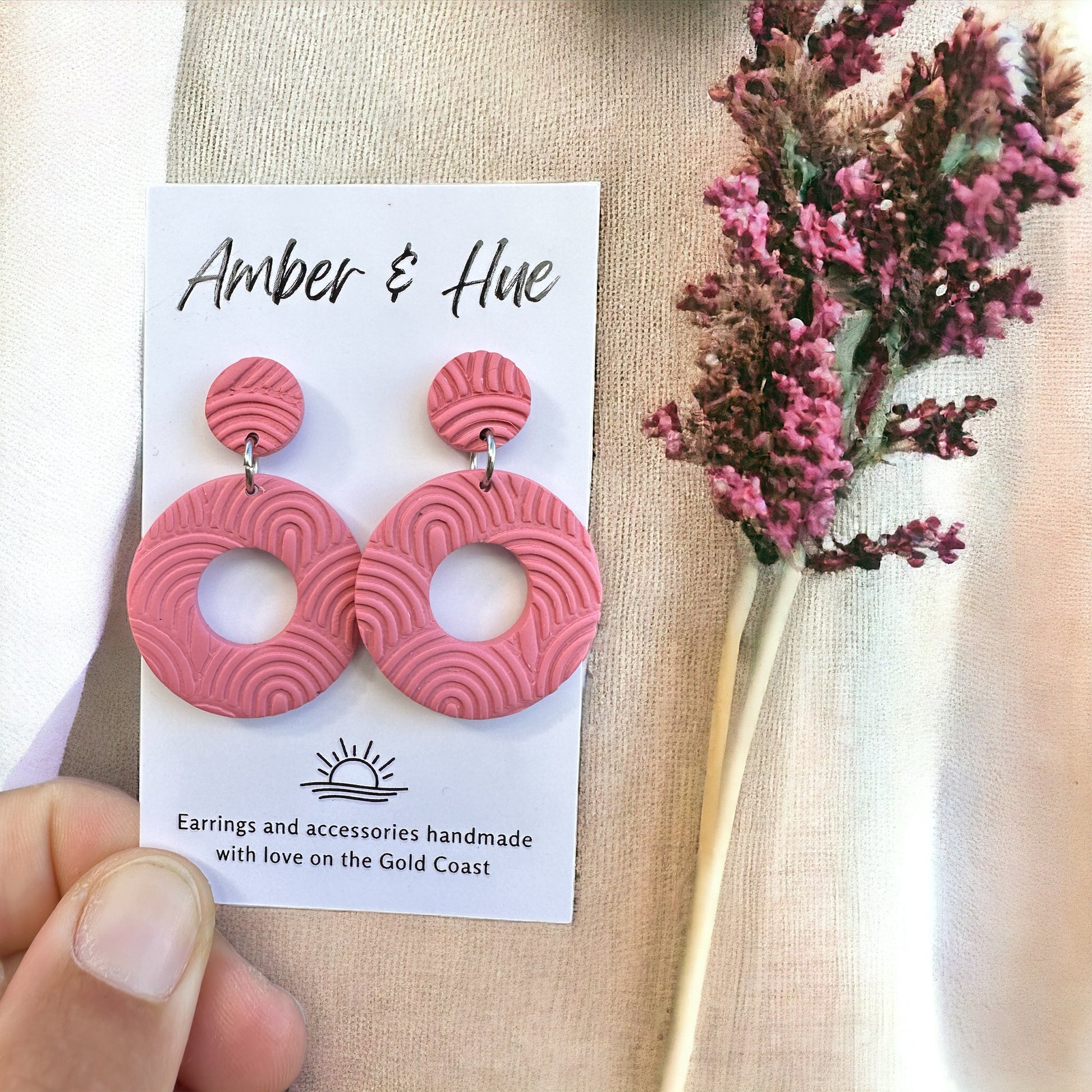 Embrace Textured Elegance: Pink Textured Hoop Dangle Earrings, Handcrafted from Polymer Clay