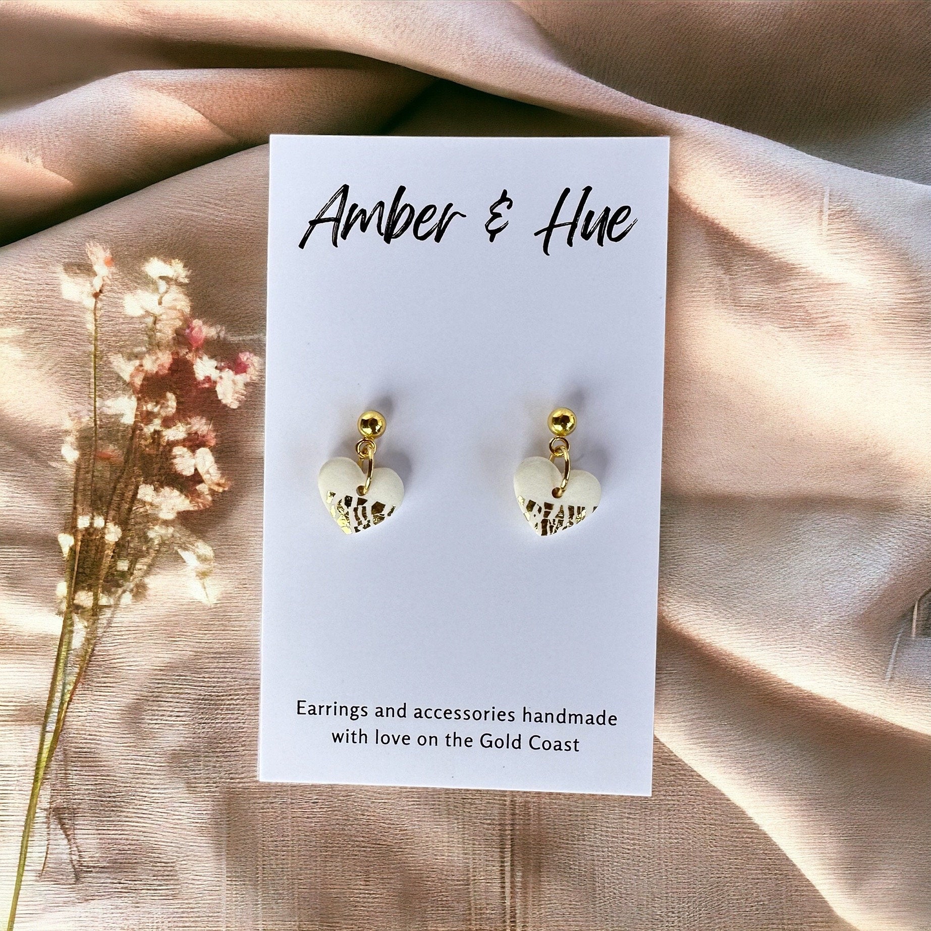 Add a touch of delicate charm to your everyday with these adorable Tiny White & Gold Heart Dangle Earrings, handcrafted from lightweight polymer clay. These miniature masterpieces are perfect for anyone who loves understated elegance with a touch of whimsy.